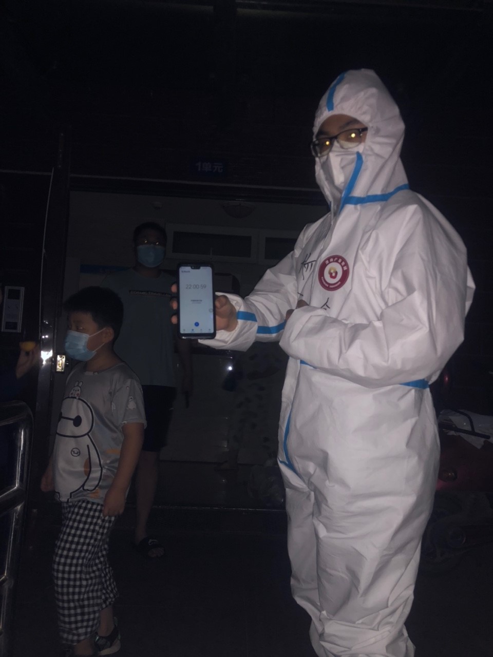 集團支援天橋區(qū)濱河雅居的下沉人員由翟思成帶隊,帶領(lǐng)郭正亮、杜瑞帥、趙士民、楊世興、馮鵬飛等5名志愿者,自4月27日進駐濱河雅居社區(qū)以來,他們聽從社區(qū)安排,進行核酸檢測維持秩序,人員摸排、統(tǒng)計數(shù)據(jù)等工作。“每天下班都得晚上10點半了”, 翟思成說,為保證社區(qū)居民核酸檢測不漏一人,雖然大家的居住地距離濱河雅居都很遠,但還是克服重重困難按時到崗,盡職盡責(zé)地完成社區(qū)工作。特別是自4月28日以來,濱河雅居樓棟出現(xiàn)密接和次密接,需要24小時管控,金鐘集團的志愿者白天維持核酸檢測秩序、給管控居民送菜送食品,晚上還要值夜班、進行住戶摸查,條件艱苦、工作勞累,但是志愿者們沒有怨言、只有擔(dān)當,他們用實際行動踐行國企責(zé)任,使命擔(dān)當。