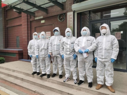 在槐蔭區(qū)錦繡睿城社區(qū)和錦繡城社區(qū),志愿團隊由劉貴武帶隊,閆春貞、李登哲、侯志強、劉欣、張現(xiàn)錄6人組成,他們兵分兩組,每天早上5點30分出發(fā),到達社區(qū)后立即開始準備核酸檢測,“請大家排好隊”、“請保持1米距離”、“請?zhí)崆按蜷_健康碼”......在核酸采樣現(xiàn)場,志愿者們穿著隔離衣,戴著口罩,這樣的提醒引導(dǎo)要重復(fù)幾百次,不一會兒就口干舌燥,但是他們堅持耐心引導(dǎo),把疫情防控放在第一位,按規(guī)定進行消殺,提醒居民保持距離,和病毒賽跑和戰(zhàn)斗,不能有絲毫馬虎和懈怠。他們一直工作到晚上近10點,每天回到住處已經(jīng)很晚了,但第二天依然按時到達社區(qū)。劉貴武說,“醫(yī)務(wù)工作者和社區(qū)工作者比我們堅守的時間更長,他們更辛苦!我作為一名預(yù)備黨員,槐蔭隊的隊長,更應(yīng)該沖鋒在前,帶領(lǐng)大家圓滿完成任務(wù),接受黨組織的考驗。”