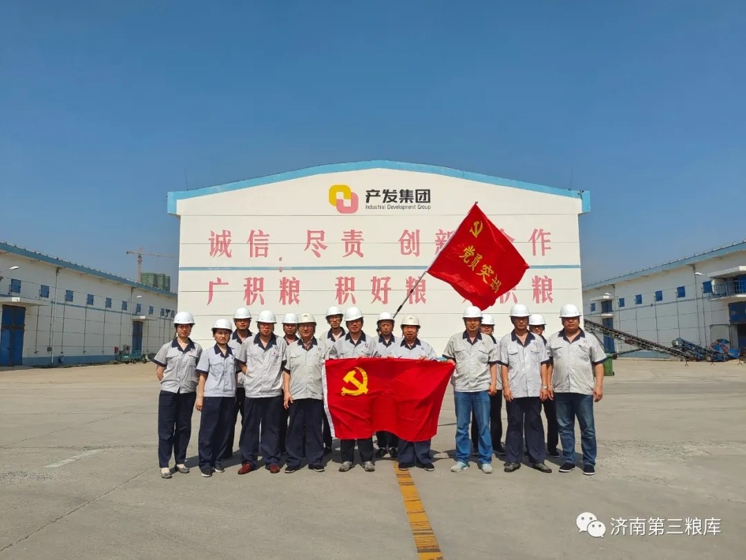 一直以來,第三糧庫黨支部在濟糧集團黨委的帶領下,堅持將黨建工作和生產經營相融合,積極創建 “紅色引領,綠色儲糧--共繪糧庫發展藍圖”的黨建品牌。他們以黨建品牌建設為抓手,積極發揮基層黨組織戰斗堡壘作用,并形成了獨特的品牌理念。在夏糧收購中,黨員干部們組成黨員突擊隊,深入收糧現場,帶領廣大職工不怕熱、不怕臟的沖鋒在業務最基層。他們亮身份、強素質、當先鋒,用實際行動踐行共產黨員的責任與擔當。