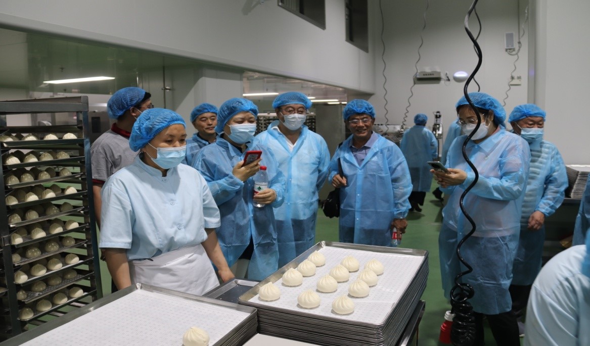 座談會(huì)召開(kāi)之前,王浩濤書(shū)記等領(lǐng)導(dǎo)帶領(lǐng)老黨員代表現(xiàn)場(chǎng)參觀了長(zhǎng)清食品產(chǎn)業(yè)園。在園區(qū)內(nèi)各生產(chǎn)車(chē)間現(xiàn)場(chǎng),寬敞明亮的車(chē)間環(huán)境、一排排整齊劃一的流水線設(shè)備,統(tǒng)一著裝精神抖擻的員工們,讓老黨員代表眼前一亮,心潮澎湃,感慨萬(wàn)千,大家感慨:金德利快餐終于從手工作坊跨越到現(xiàn)代化工廠生產(chǎn),這樣的改變是原來(lái)不敢想像的,大家對(duì)未來(lái)發(fā)展前景充滿信心和期待。