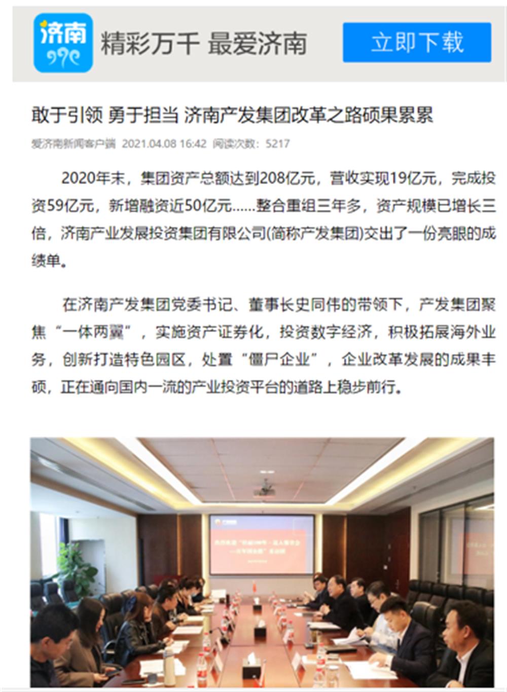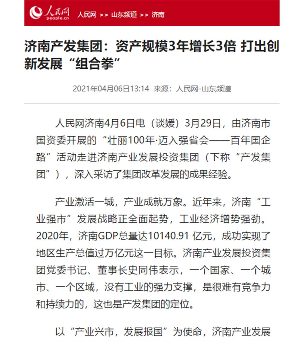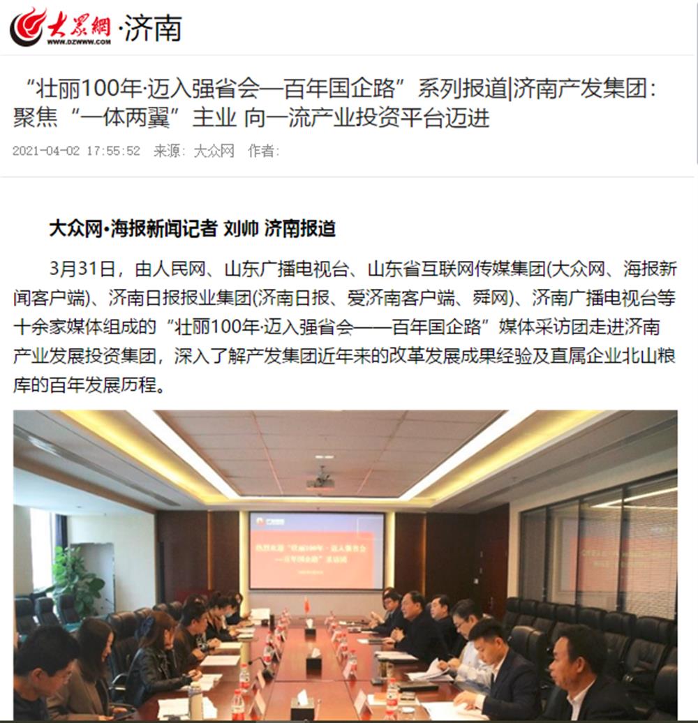 近日,市國資委舉辦的“壯麗100年·邁入強省會——百年國企路”媒體團一行到訪濟南產發集團后,人民網、大眾網、閃電新聞、濟南電視臺、濟南日報、帶濟南等多家國家、省市級媒體聚焦報道了集團改革發展的成果經驗。
